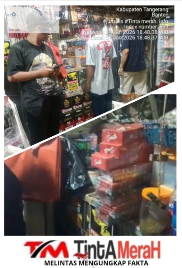 TintAMerah-Kab.Tangerang || Sebuah agen sembako bernama toko jenny berlokasi dijalan raya pasar Kemis kabupaten tangerang, diduga menimbun dan menjual puluhan roko tanpa cukai.