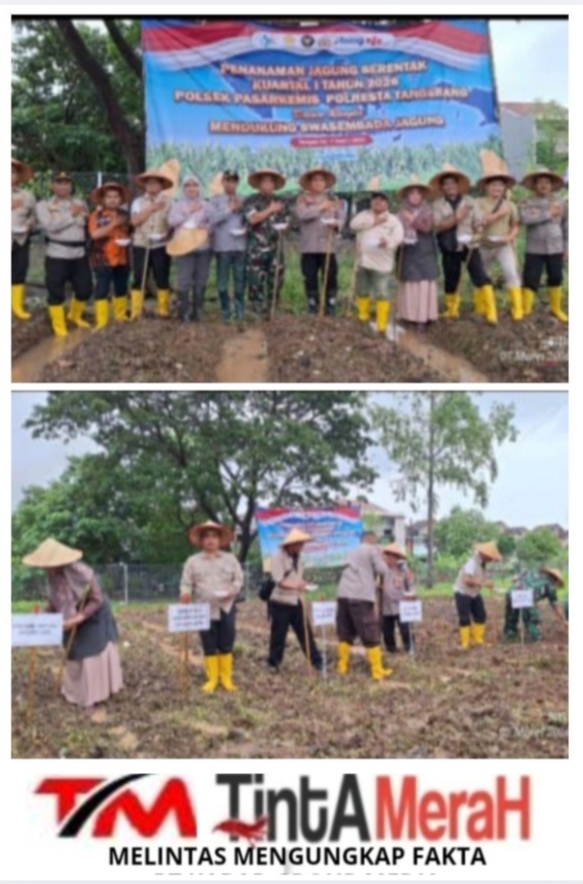 Tintamerah-.Kab.Tangerang||Dalam mendukung swasembada pangan Polri laksanakan kegiatan Penanaman Jagung Serentak Kuartal I Tahun 2026, Kapolsek pasar Kemis mengikuti zoom meeting dan penanaman jagung.