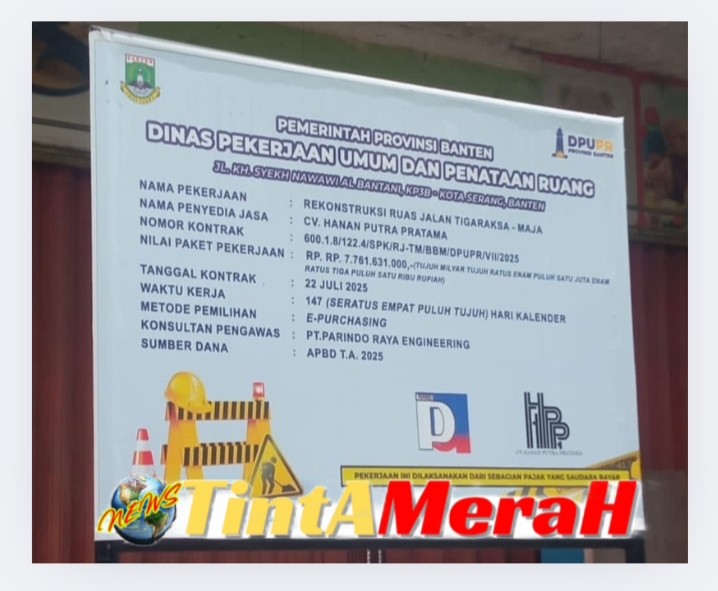 CV HANAN PUTRA PRATAMA adalah kontraktor pelaksana kegiatan Rekonstruksi Ruas jalan provinsi Banten Tigaraksa – Maja titik lokasi kegiatan desa Cisoka kecamatan Cisoka kabupaten Tangerang dengan sumber anggaran biaya dari APBD Provinsi Banten tahun anggaran 2025 sebesar Rp.7 761 631 000,- (tujuh milyar tujuh ratus enam puluh satu juta enam ratus tigapuluh satu ribu rupiah),