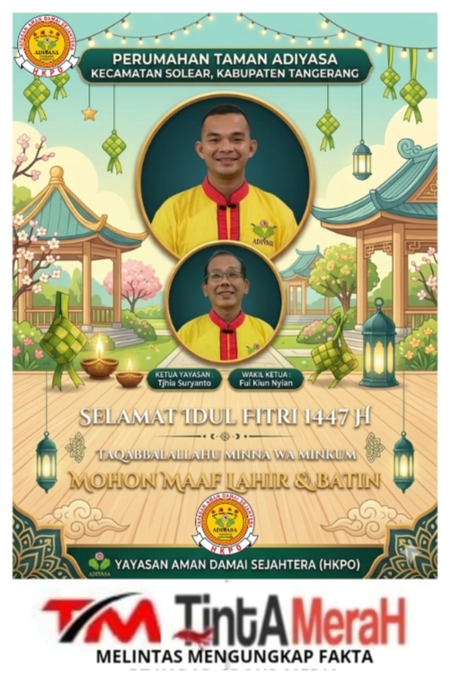 TintAMeraH-Kab.Tangerang||Segenap keluarga besar Yayasan Aman Damai Sejahtera (HKPO), Perumahan Taman Adiyasa desa Cikasungka kecamatan Solear kabupaten Tangerang, Mengucapkan : “Selamat Hari Raya Iedul Fitri 1447 H.” Semoga membawa keberkahan, kedamaian dan kemakmuran.